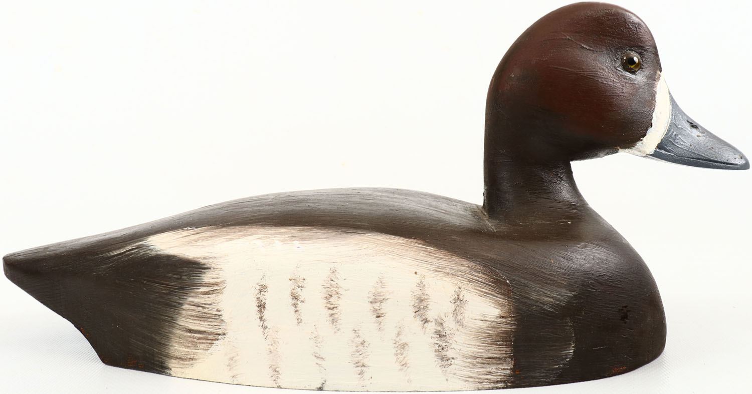Bluebill Hen by Steve Lyndsay, Gananoque, Ontario, glass eyes, structurally excellent, solid wood, excellent original paint. Grade: Excellent ++ - Value: 40 to 150
