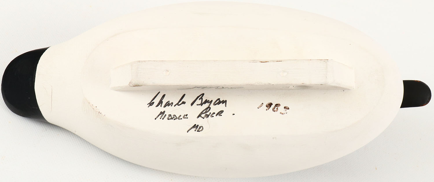 Goldeneye Drake by Charlie Bryan, Middle River, MD, painted eyes, structurally excellent, solid wood, excellent original paint. Grade: MINT - Value: 40 to 150