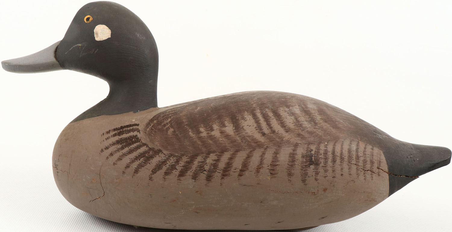Goldeneye Hen by Paul Gibson, Havre de Grace, MD, painted eyes, structurally excellent, solid wood, excellent original paint, has two hairline age cracks, signed on bottom. Grade: Excellent ++ - Value: 40 to 150