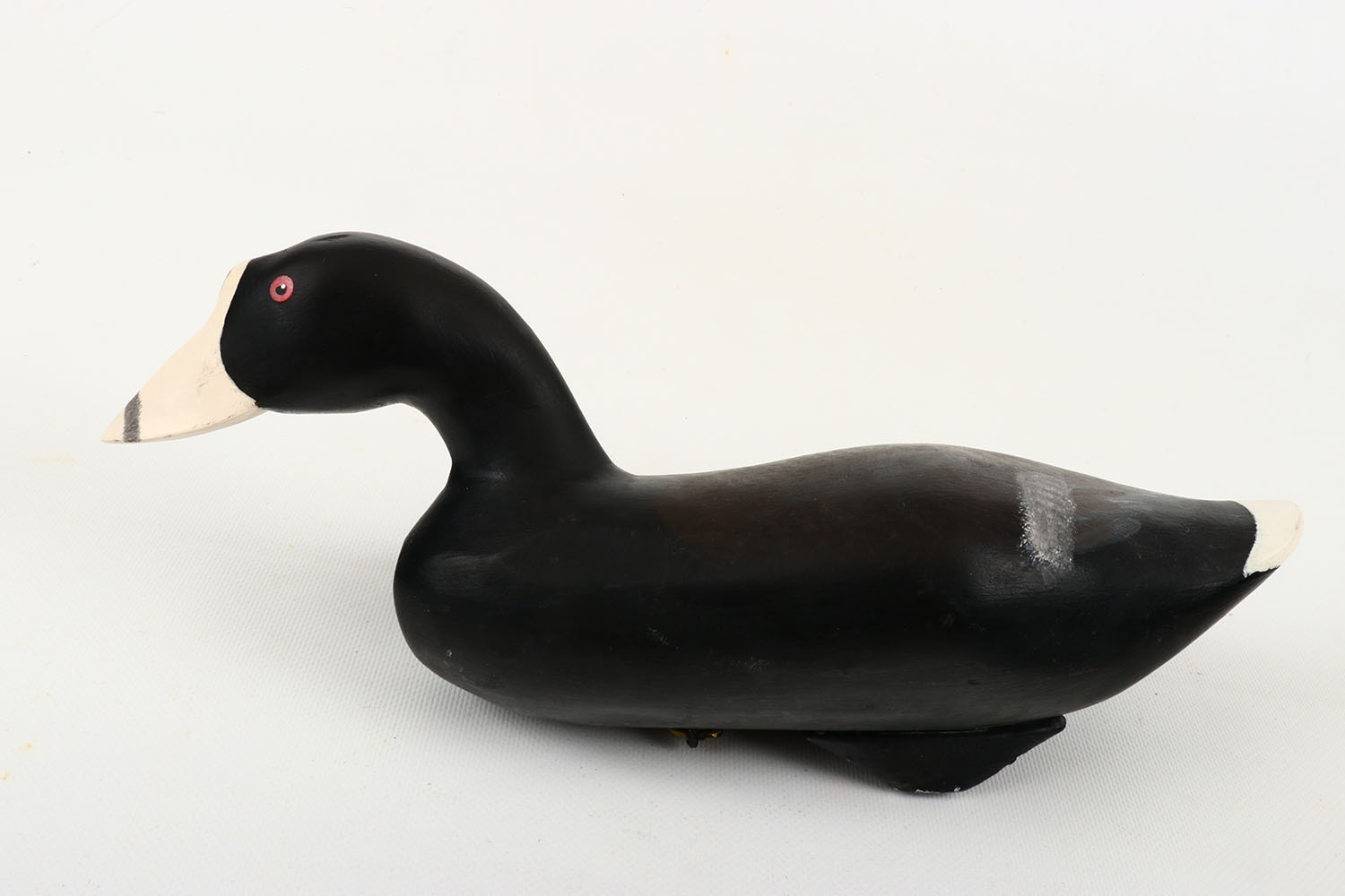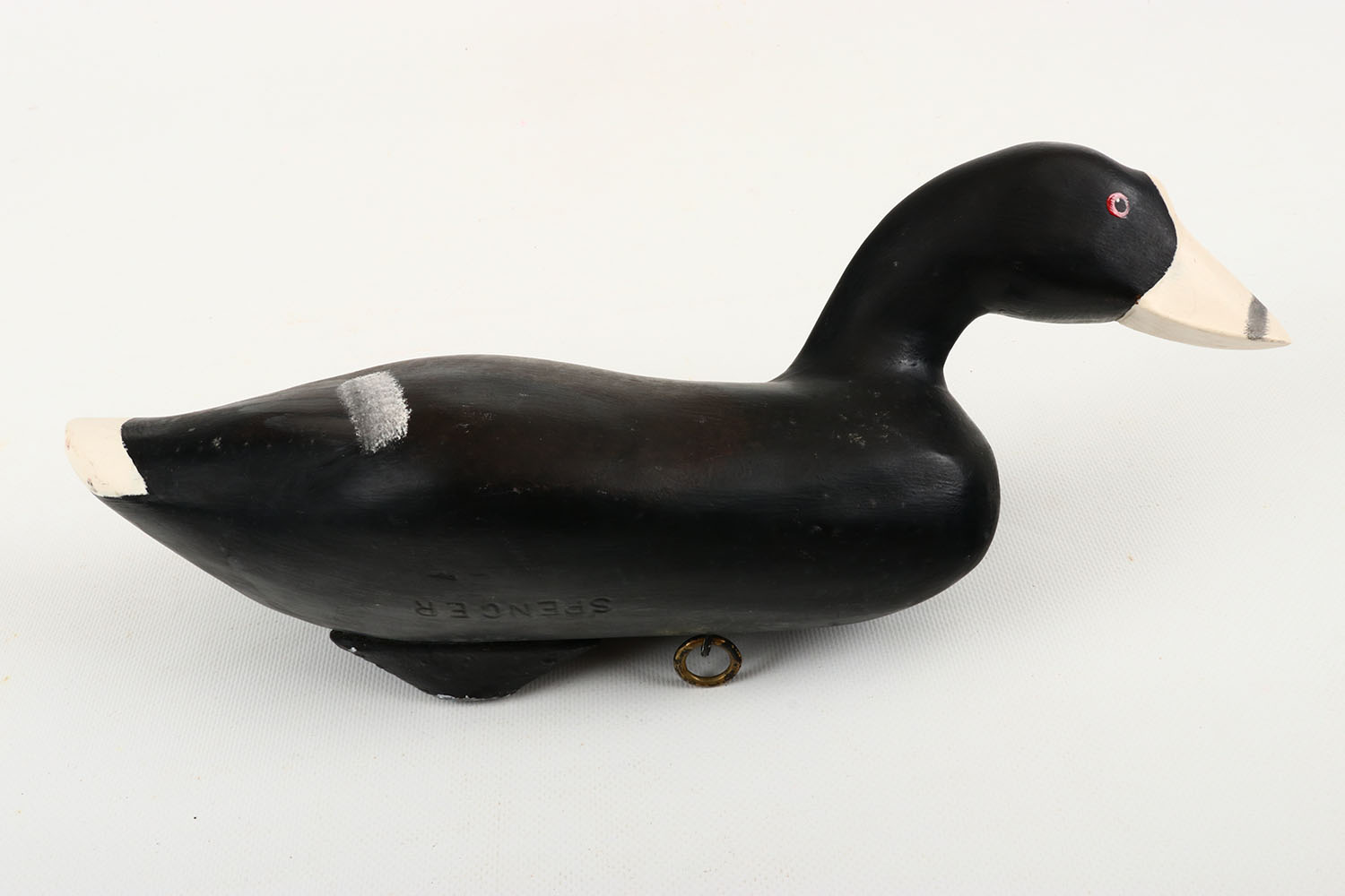 Coot Duck by Spencer, painted eyes, structurally excellent, solid wood, excellent original paint. Grade: Excellent ++ - Value: 40 to 150