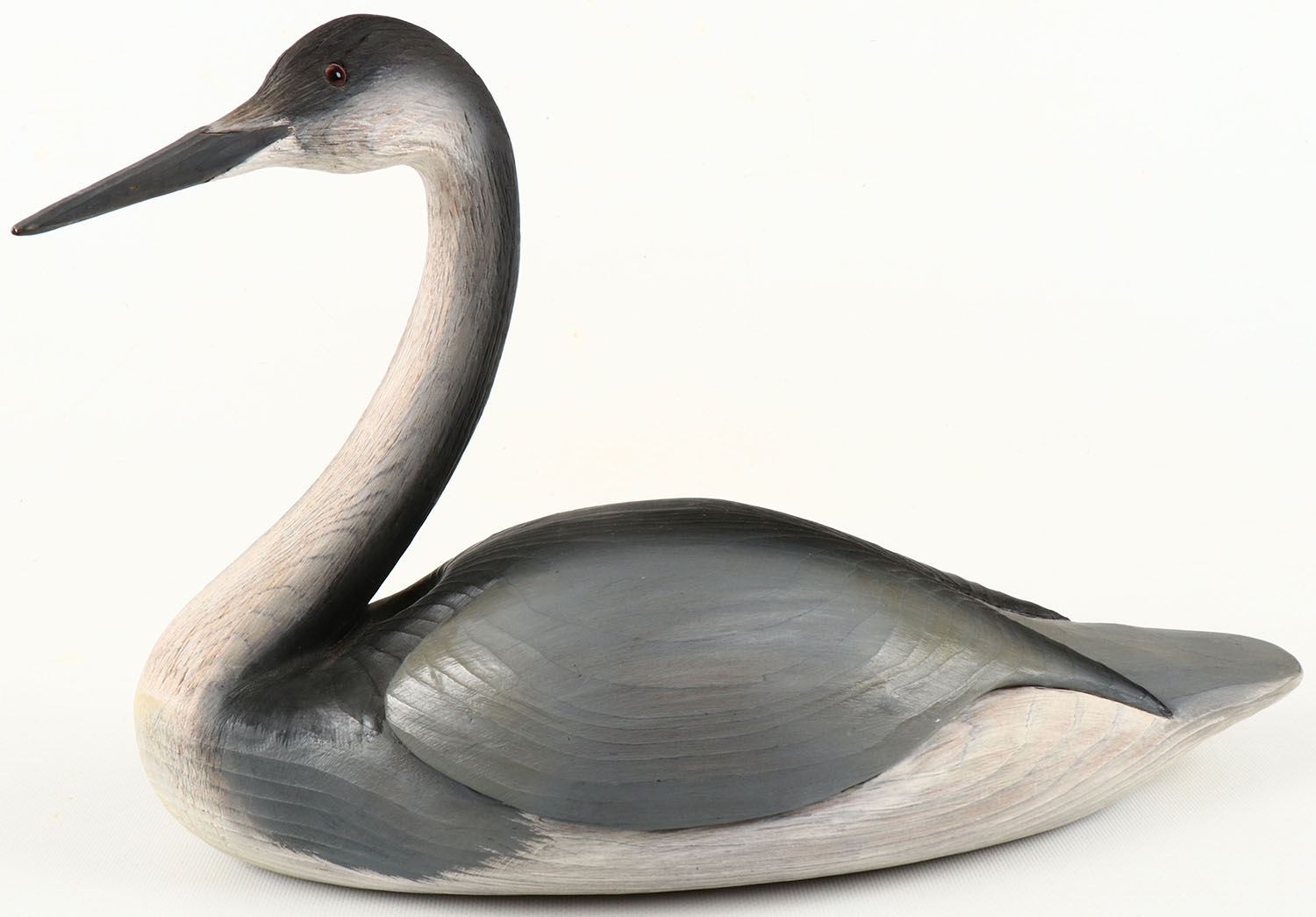 Western Grebe by Walter Oler, Chincoteague, VA, glass eyes, structurally excellent, solid wood, excellent original paint, has