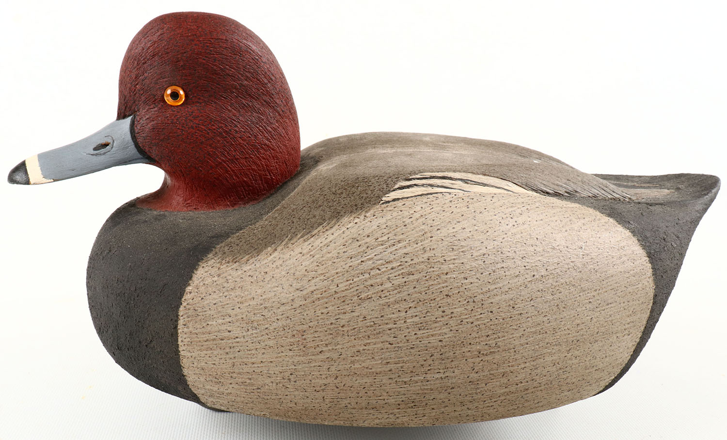 Redhead Drake by R Bodnar (2002), glass eyes, structurally excellent, solid wood, excellent original paint. Grade: MINT - Value: 40 to 150