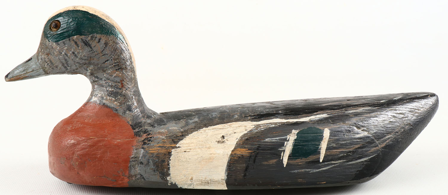 Widgeon Drake by unknown maker, structurally excellent, solid wood, excellent original paint with typical wear. Grade: Excellent - Value: 20 to 100