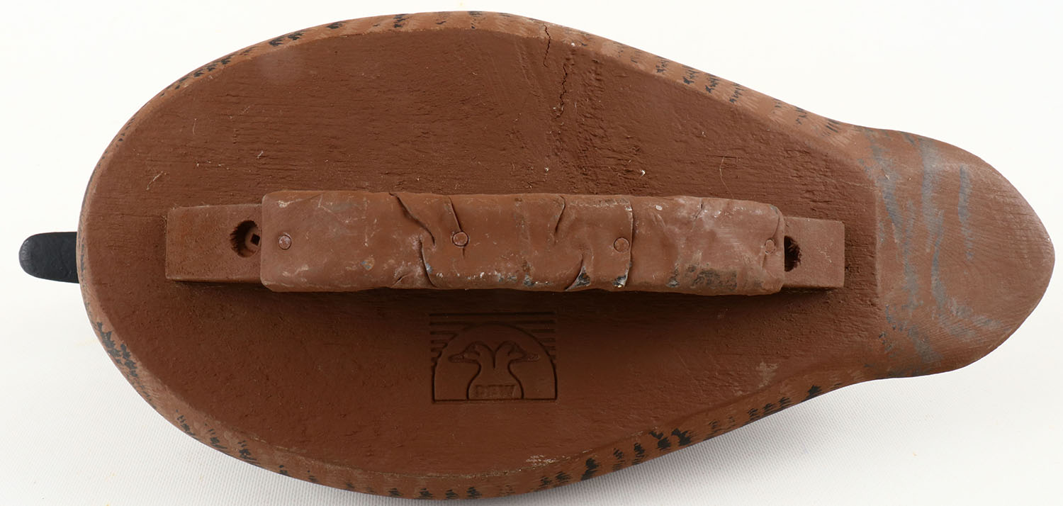 Common Eider Hen by unknown maker, MD, glass eyes, structurally excellent, solid wood, excellent original paint, branded BDW on bottom. Grade: MINT - Value: 20 to 100
