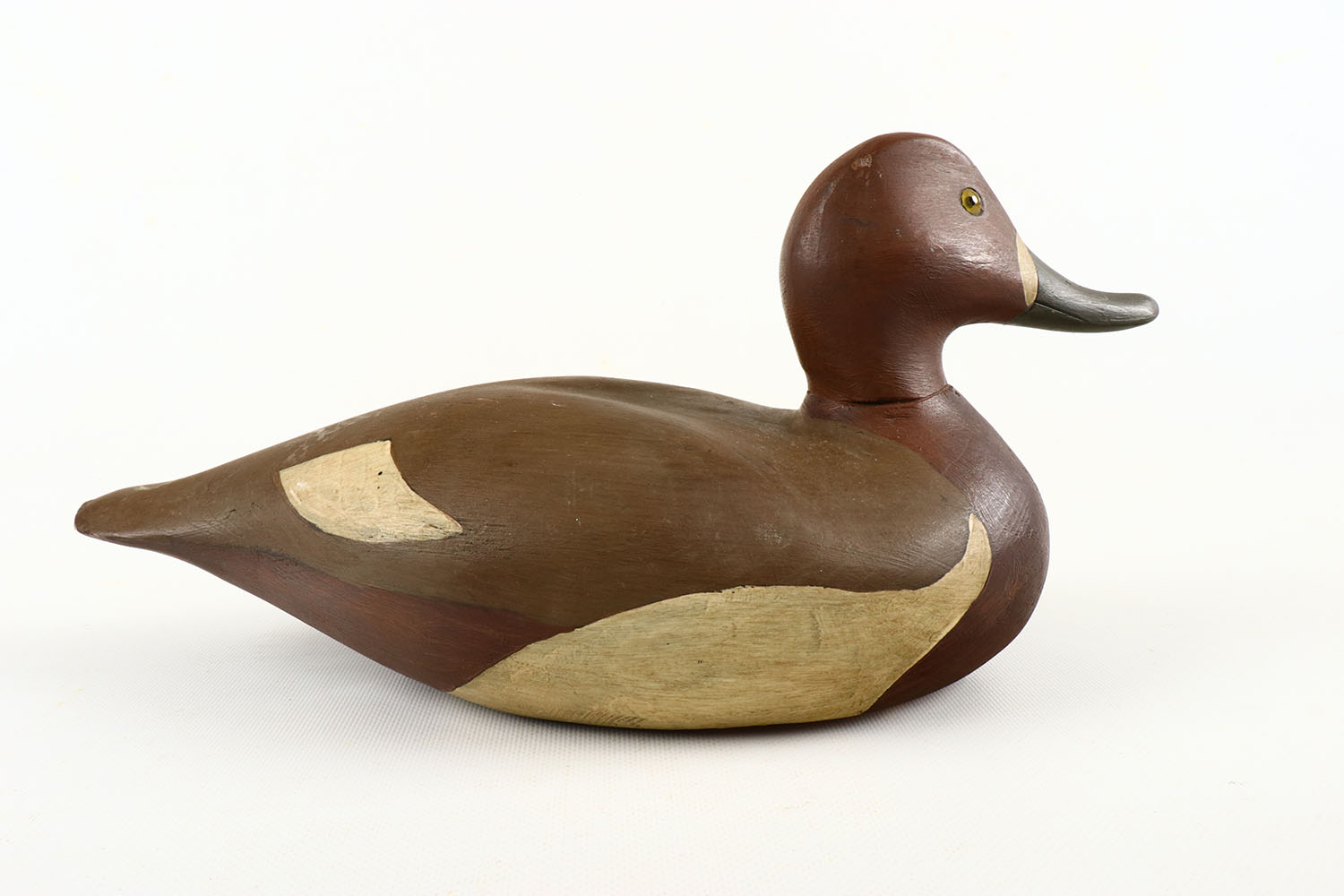 Bluebill Hen by Hingham Harbor Decoys glass eyes, structurally excellent, solid wood, excellent original paint. Grade: Excellent - Value: 20 to 100