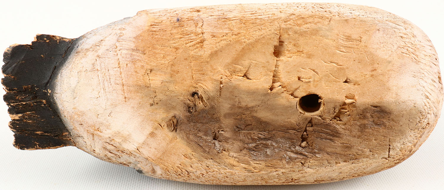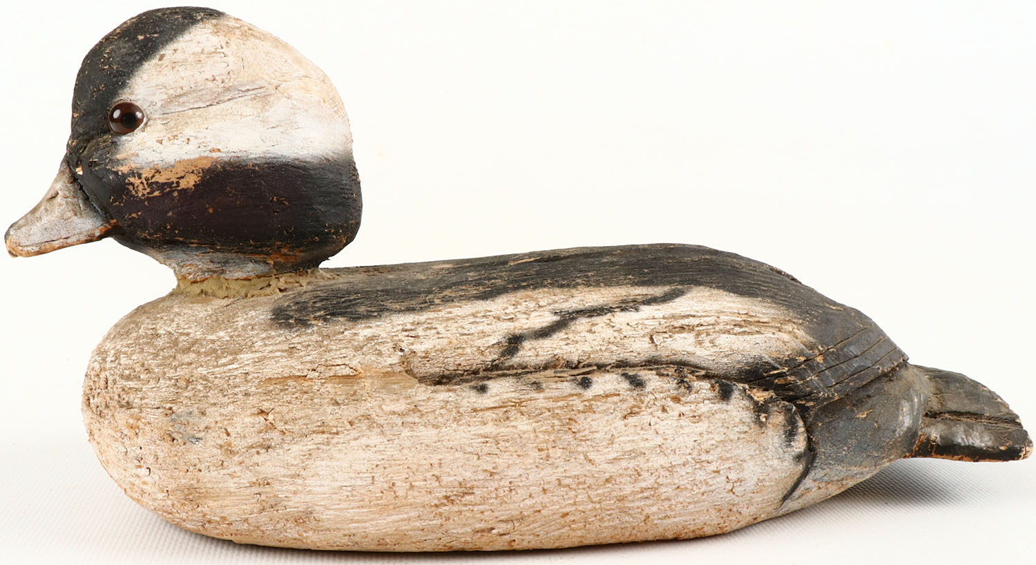 Bufflehead Drake by unknown maker, glass eyes, structurally excellent, solid bass wood, excellent original paint with typical wear. Grade: Very Good + - Value: 20 to 100