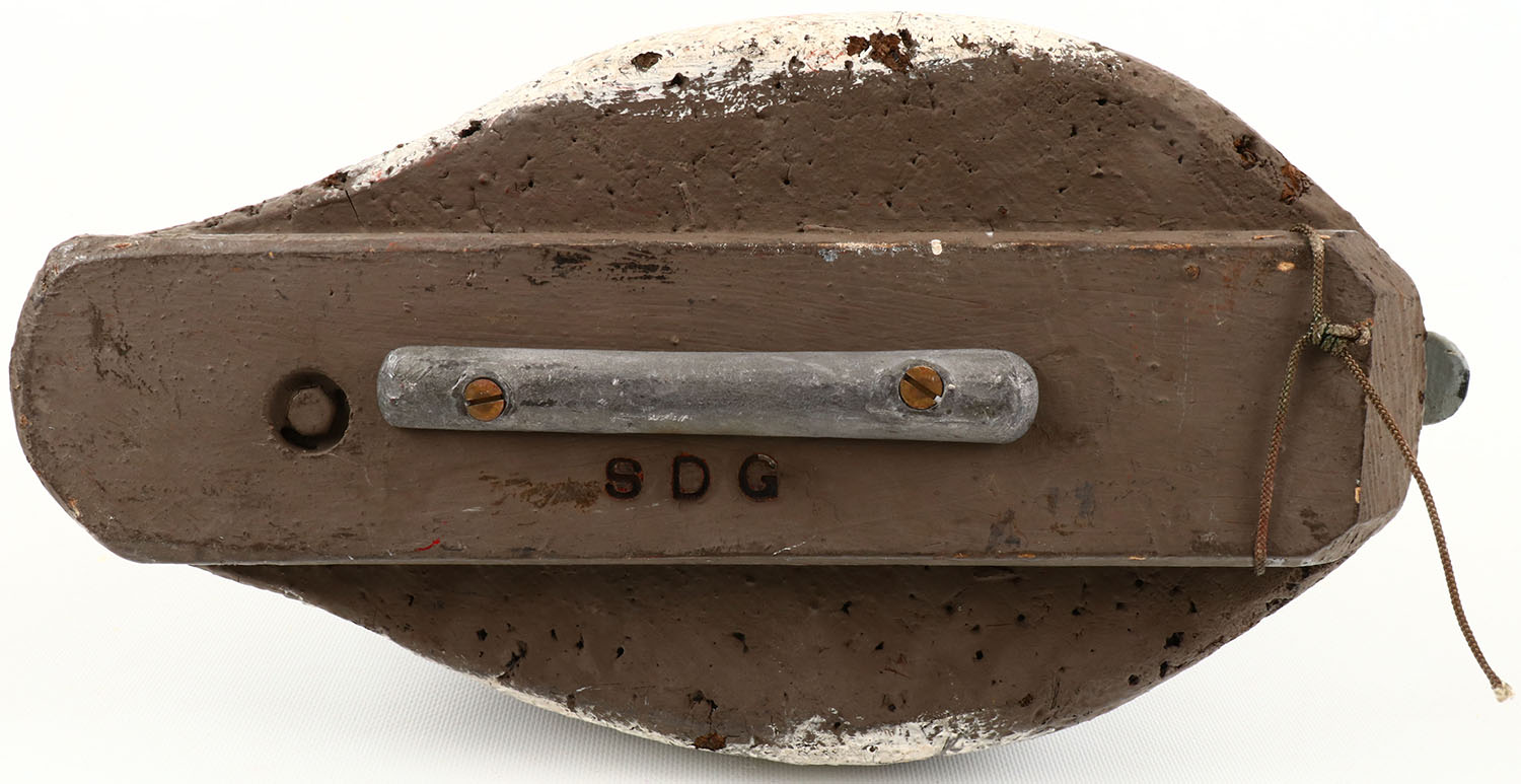 Bluebill Hen by SDG, painted eyes, structurally excellent, cork bottom, excellent original paint, has branded SDG on bottom. Grade: Excellent - Value: 10 to 100