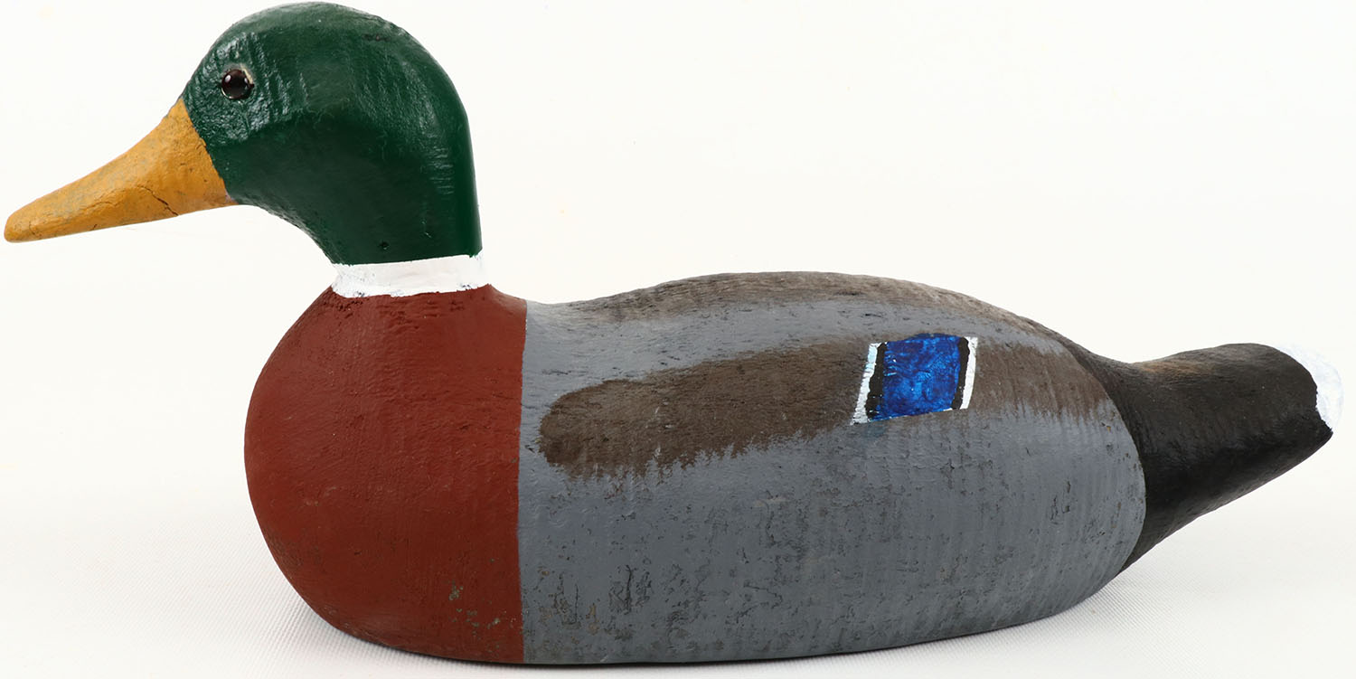 Mallard Drake by unknown maker, glass eyes, structurally excellent, solid wood, has hairline age cracks, excellent original paint. Grade: Very Good ++ - Value: 10 to 100