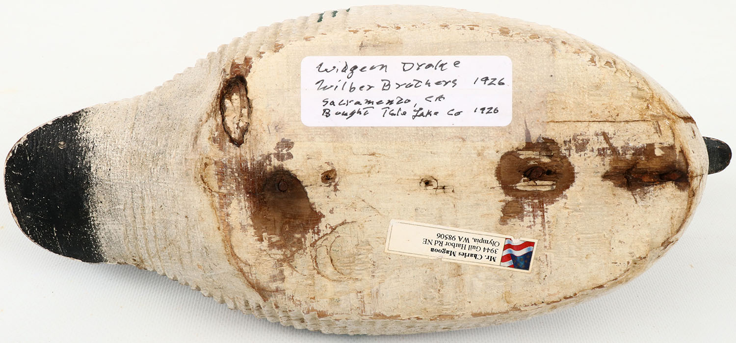 Wigeon Drake by Wilber Brothers, Sacramento, glass eyes, structurally excellent, solid wood, original paint. Grade: Excellent - Value: 100 to 250
