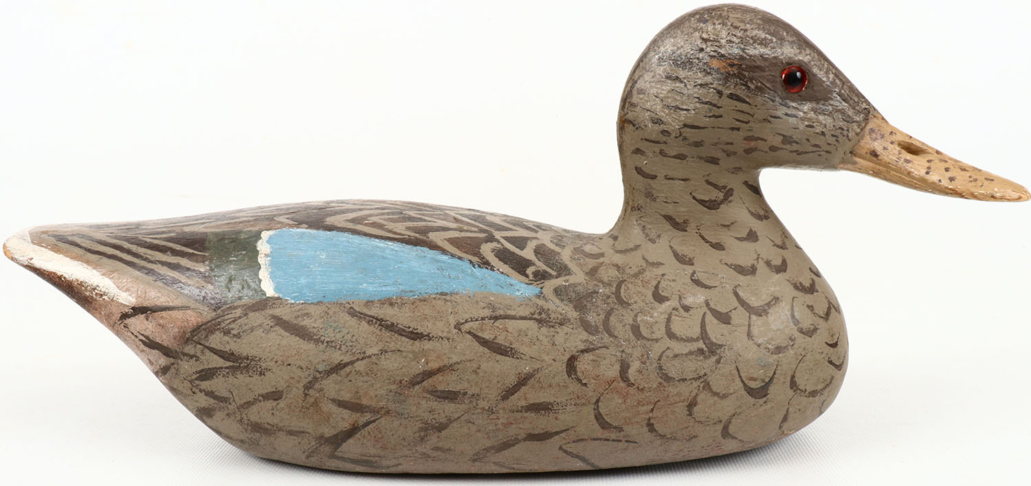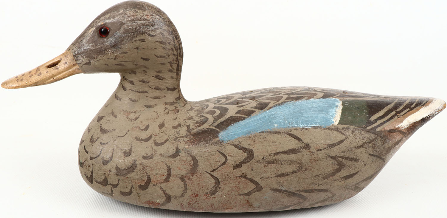 Shoveler Hen by C. Ritze, glass eyes, structurally excellent, solid wood, excellent original paint with feathered detail, has branded C RITZE on bottom. Grade: Excellent - Value: 20 to 60