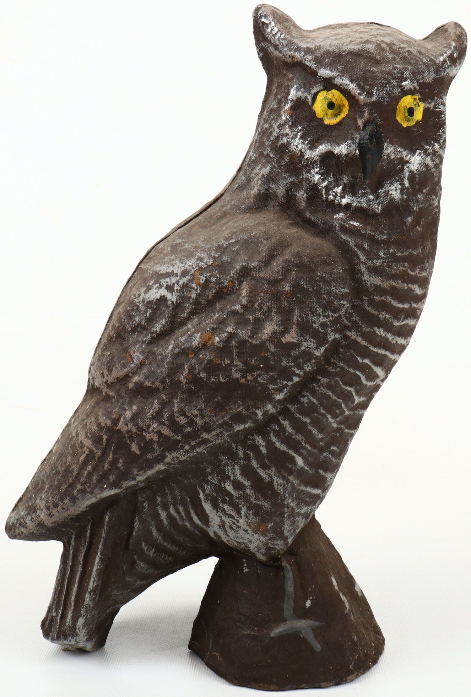 Owl Decoy by unknown maker, painted eyes, paper mache', original paint is nice. Grade: Excellent - Value: 6 to 30