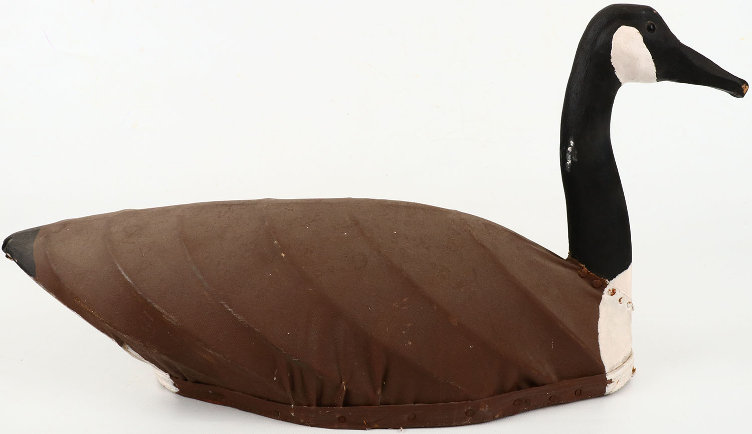 Canada Goose by George Peterman, glass eyes, structurally excellent, wood head, canvas over wire body, excellent original paint, signed on bottom. Grade: Excellent + - Value: 30 to 60