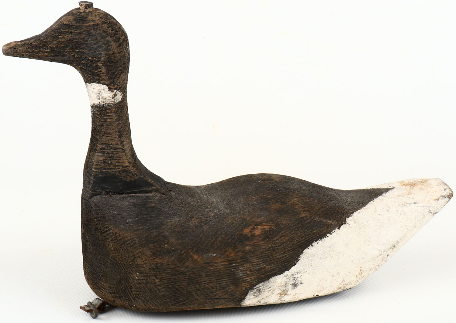 Brant from Samish Island/Skagit Valley, WA, a rig of these were brought to the WA Brant Foundation Show at the Farmhouse Inn around 2010 and sold off the back of a tailgate, no eyes, solid wood, original paint with typical wear. Grade: Very Good ++ - Value: 50 to 100