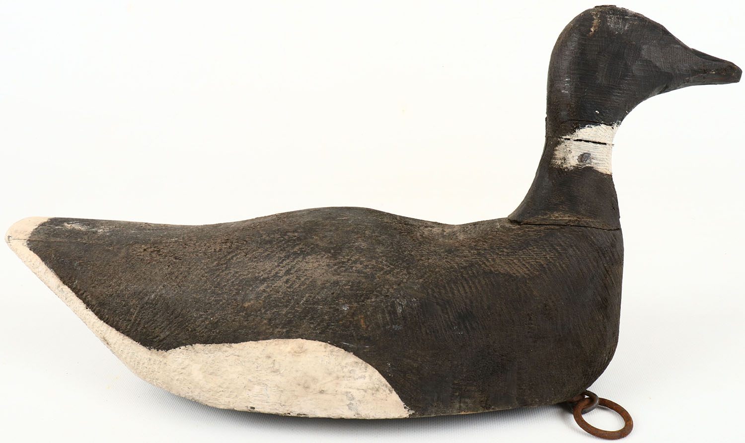 Brant from Samish Island/Skagit Valley, WA, a rig of these were brought to the WA Brant Foundation Show at the Farmhouse Inn around 2010 and sold off the back of a tailgate, no eyes, solid wood, original paint with typical wear. Grade: Very Good ++ - Value: 50 to 100