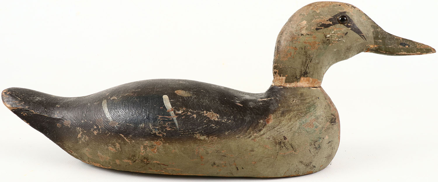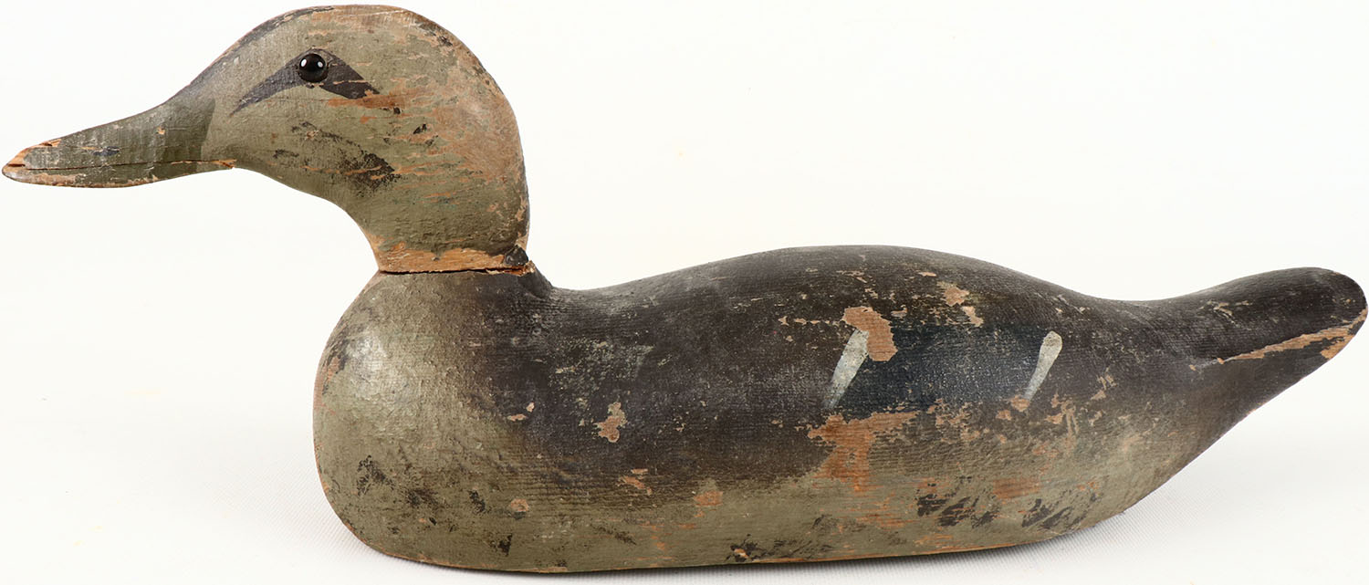 Pintail Hen by Wm. Pratt Mfg, GE, solid wood, glass eyes, original paint shows wear, has chips to bill, head has crack at base. Grade: Very Good - Value: 30 to 60