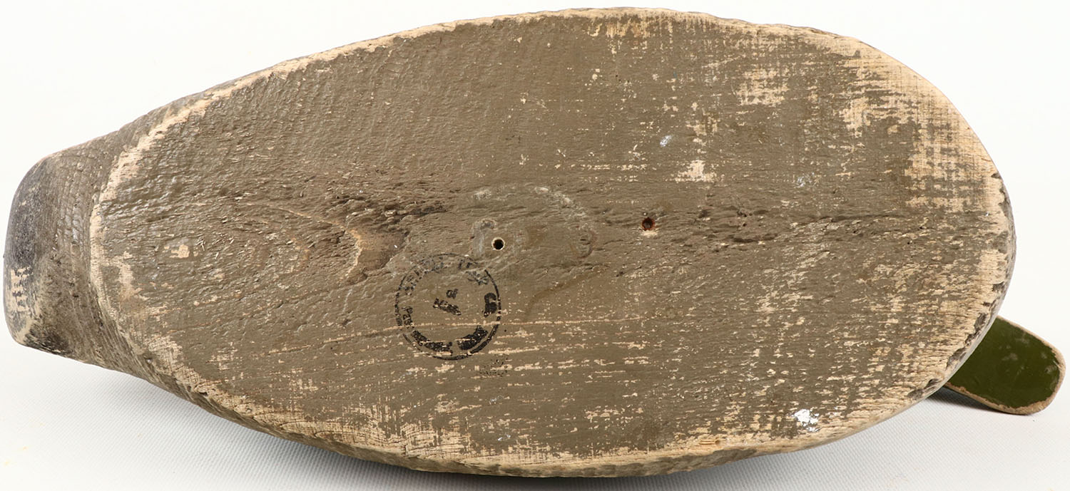 Mallard Hen by Animal Trap Co. Pascagoula Miss. stamped on bottom, GE, solid wood, original paint shows wear to edges, structurally excellent. Grade: Very Good + - Value: 20 to 60