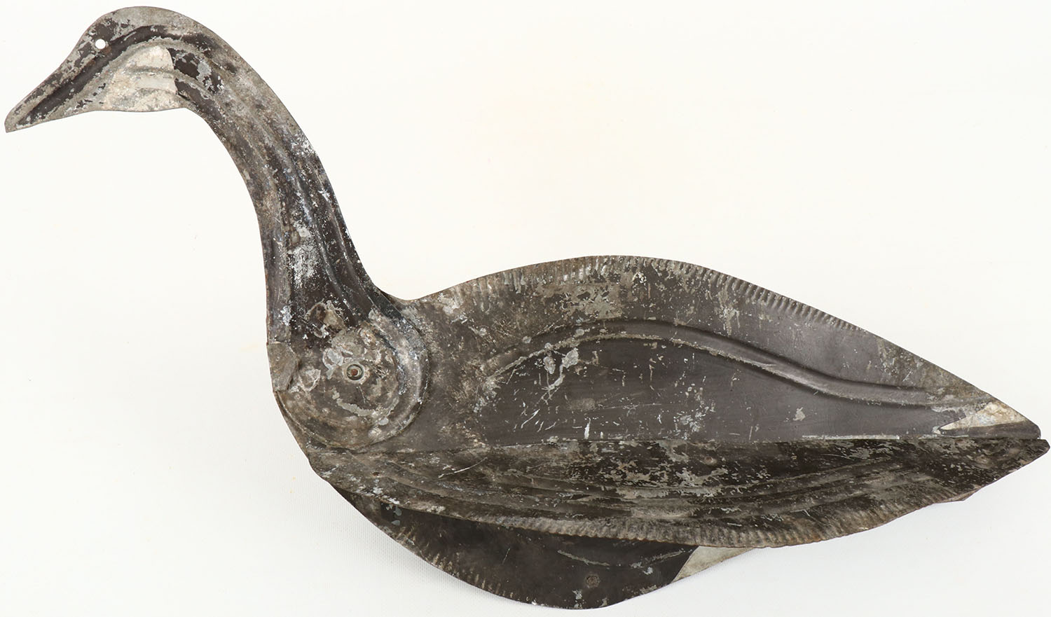 Metal Canada Goose by unknown, wings fold out & head swivels along with the stake. Grade: Very Good - Value: 20 to 100
