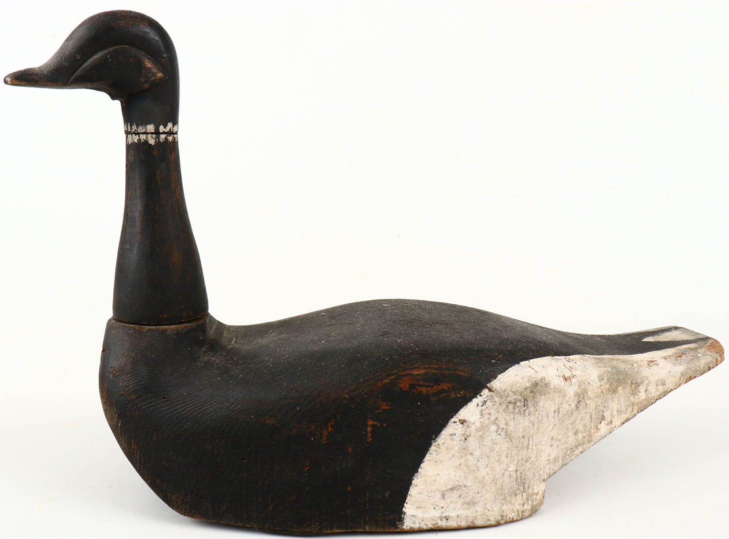 Black Brant appears to be Delta, BC, no eyes, solid wood, nice original paint with some edge wear, head is removable on wood dowel, structurally excellent. Grade: Excellent - Value: 50 to 100