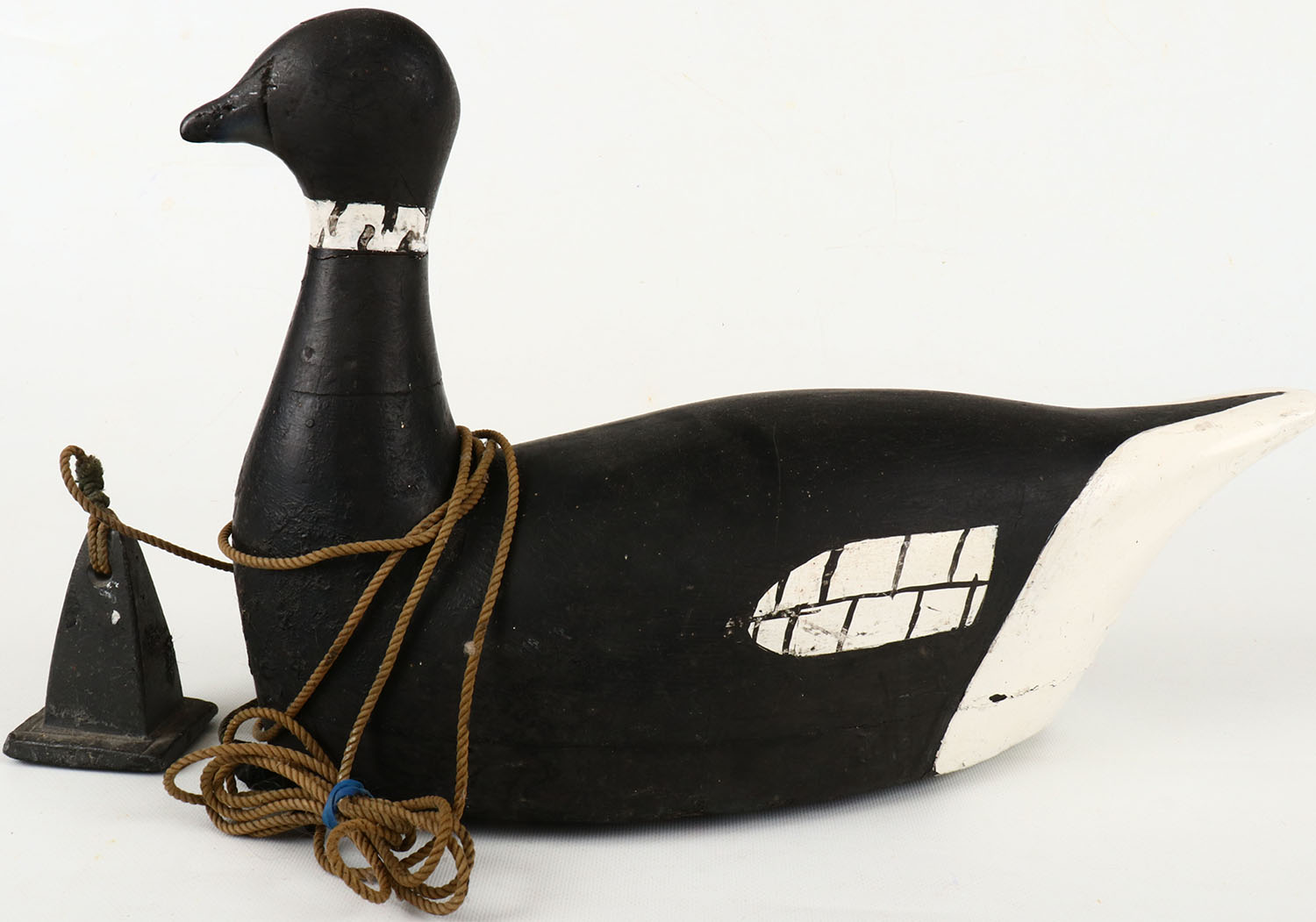 Large Black Brant by Art Forster, B.C, no eyes, solid wood, has original paint, structurally excellent, has large decoy anchor. Grade: Excellent - Value: 150 to 300