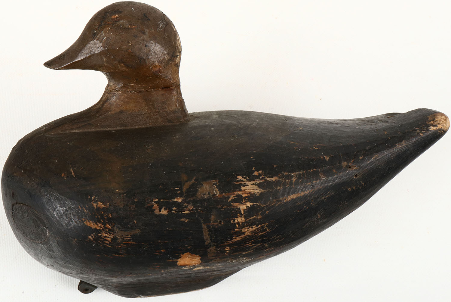 Hen Eider? by unknown, no eyes, solid wood, original paint, structurally excellent, one hairline age crack to neck. Grade: Excellent - Value: 50 to 100