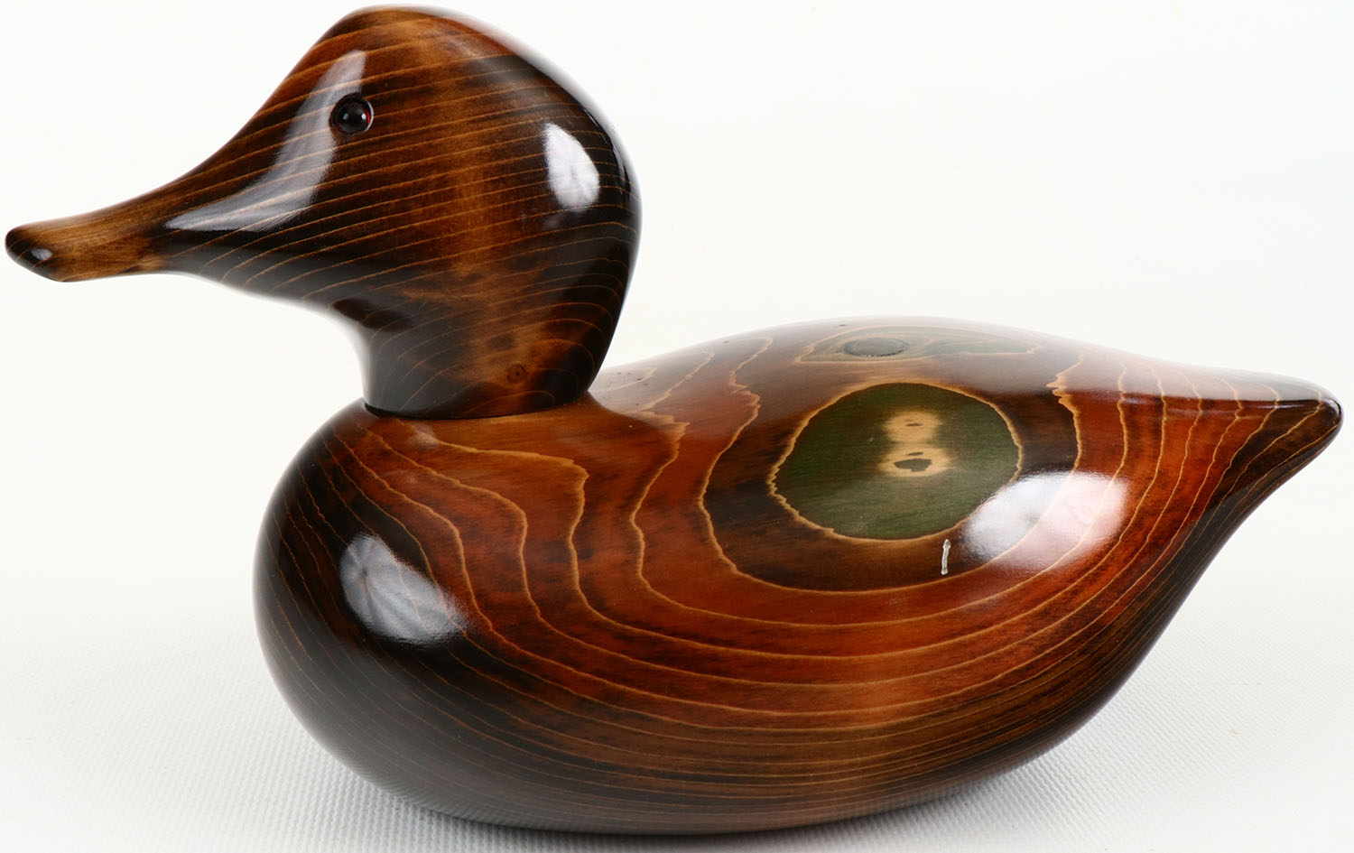 Buffelhead Decoy By Bundy & Company, John E. Bundy, glass eyes, solid wood, mint original stain and finish. Grade: MINT - Value: 10 to 30
