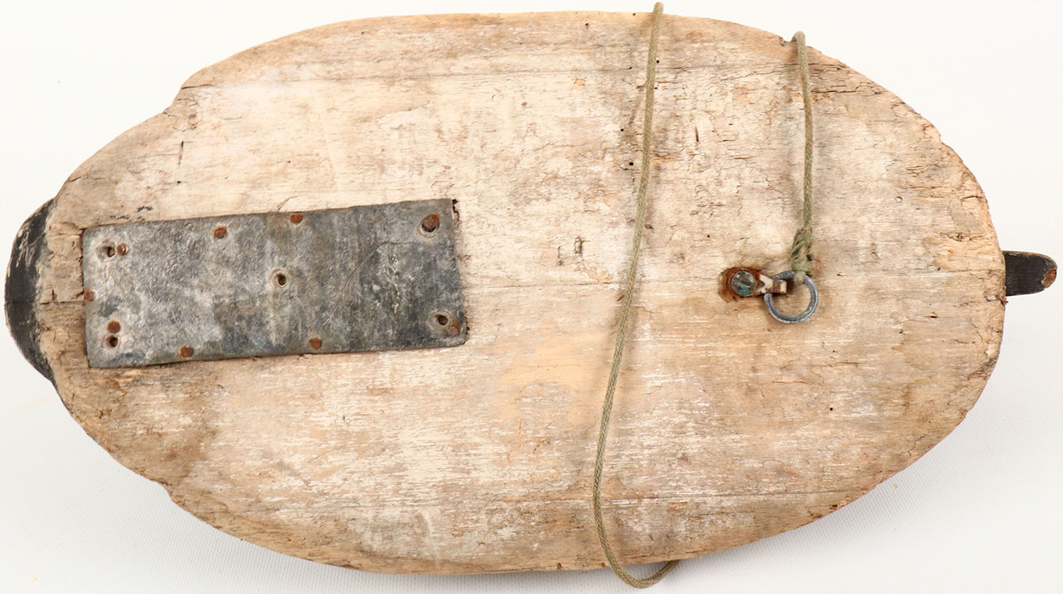 Canvasback Drake by unknown maker, glass eyes, solid balsa wood, original paint with typical wear. Grade: Very Good - Value: 30 to 60