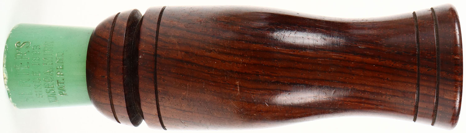 Herters Duck Call. Model No. 279. Tigerwood Barrel w/Green Stopper. Call Only. Ca. 1940s, Lodermeier Collection. Grade: Excellent + - Value: 16 to 50