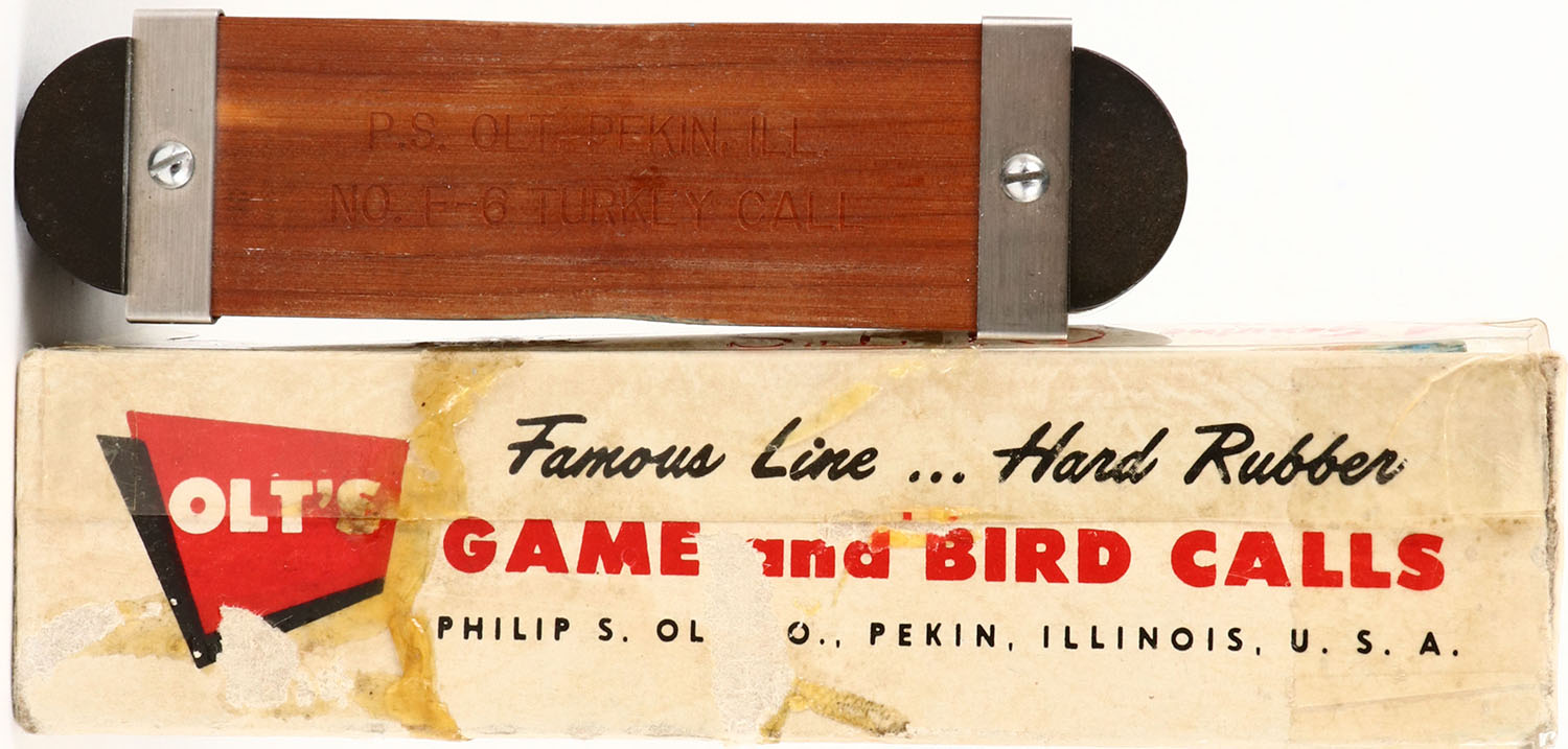 P.S. Olt No F-6 Turkey Call in original box. Grade: Excellent + - Value: 10 to 30