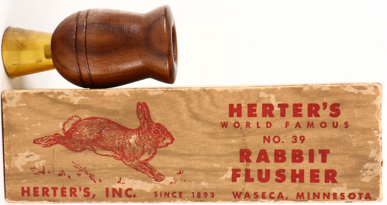 Herters Rabbit Call. Hard to find Model No. C39 Flusher Type. Box & Instructions, Lodermeier Collection. Grade: Excellent - Value: 20 to 60