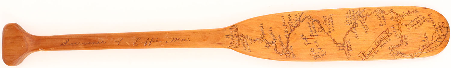 Souvenir of Effie MN salesman size oar, has detail river info of Big Fork River, 21'' long. Grade: Excellent ++ - Value: 20 to 60
