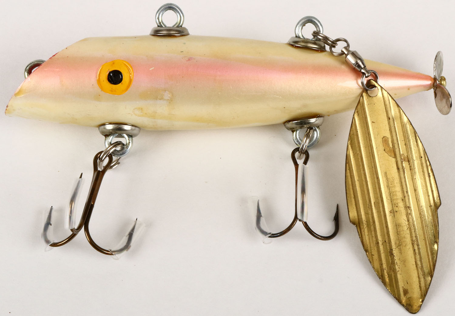 Unmarked Test Salmon Plug, CE, pearl pink with flasher on top. Grade: Excellent + - Value: 10 to 40