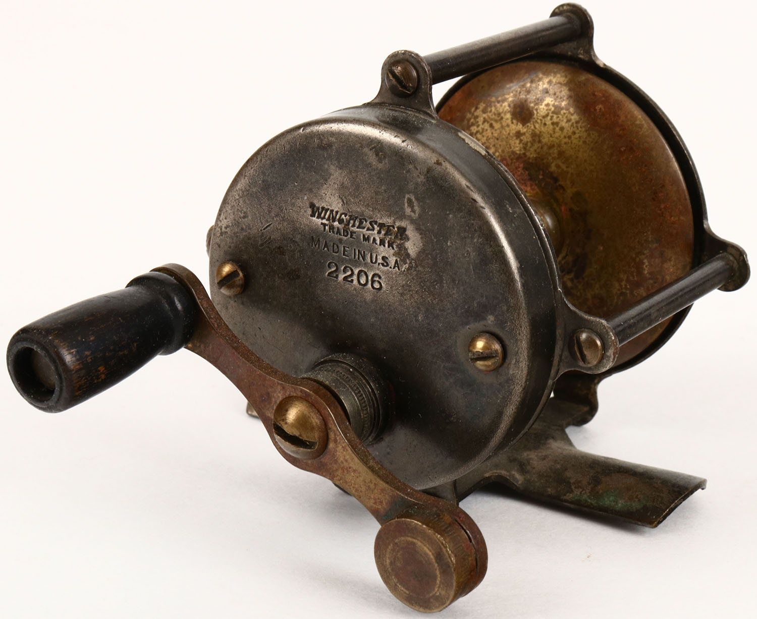 Winchester No. 2206 reel, 60 Yd., reel has strong click, single wood handle. Grade: Very Good ++ - Value: 30 to 100
