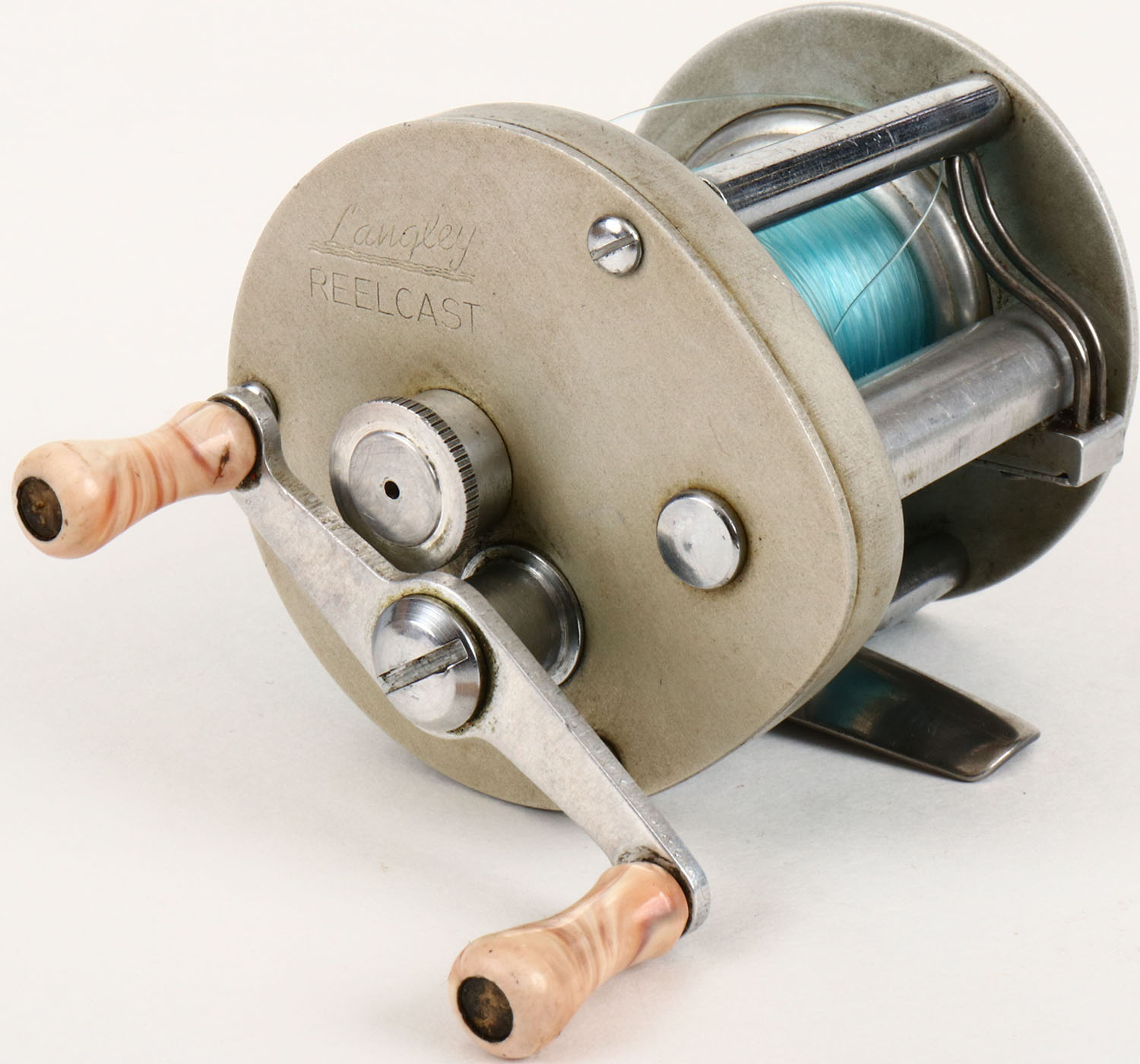Langley Reel Cast No. 500 level wind reel, strong click. Grade: Excellent - Value: 10 to 30