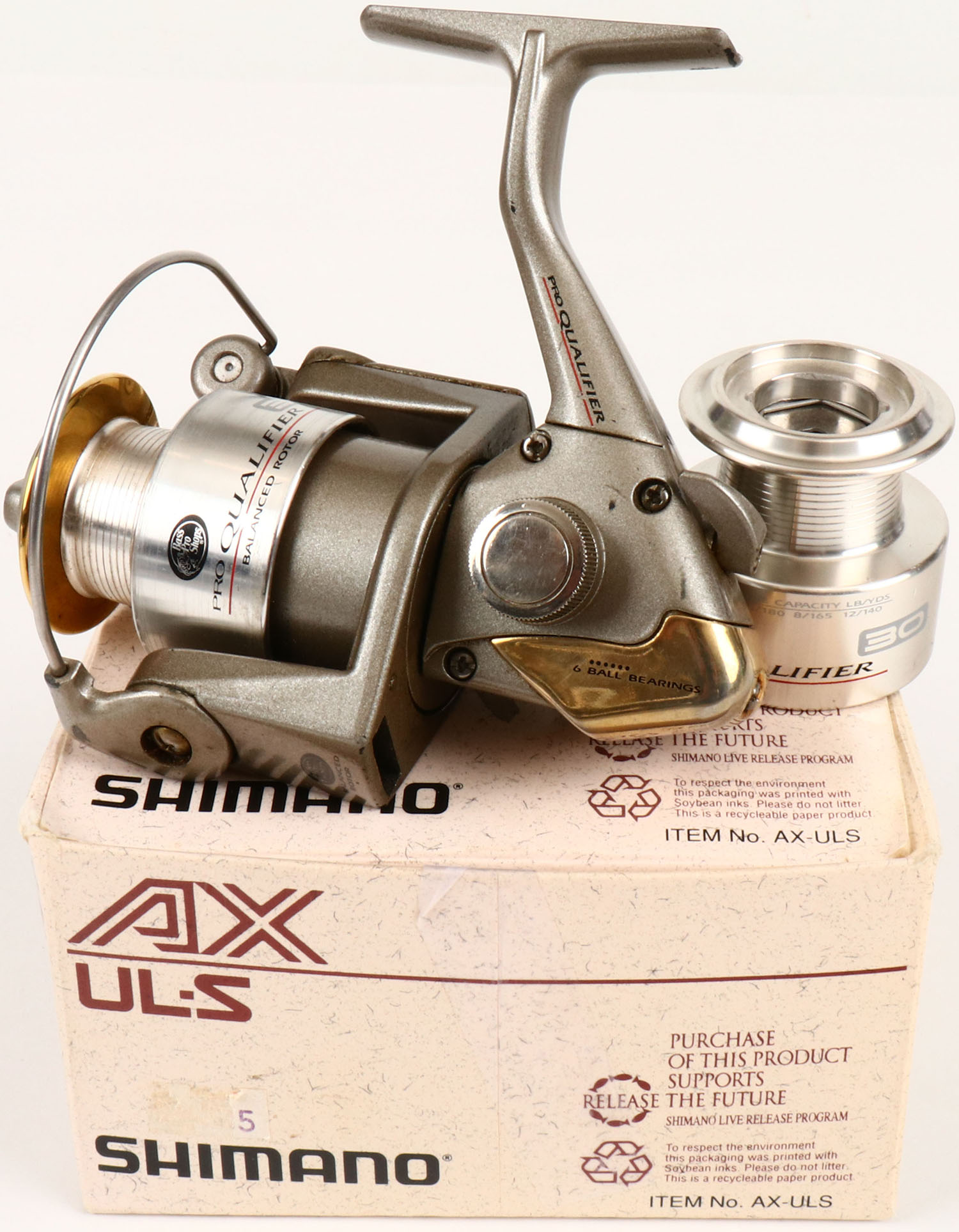 Shimano AX UL-S spinning reel in original box with extra spool & paperwork. Grade: Excellent ++ - Value: 10 to 40