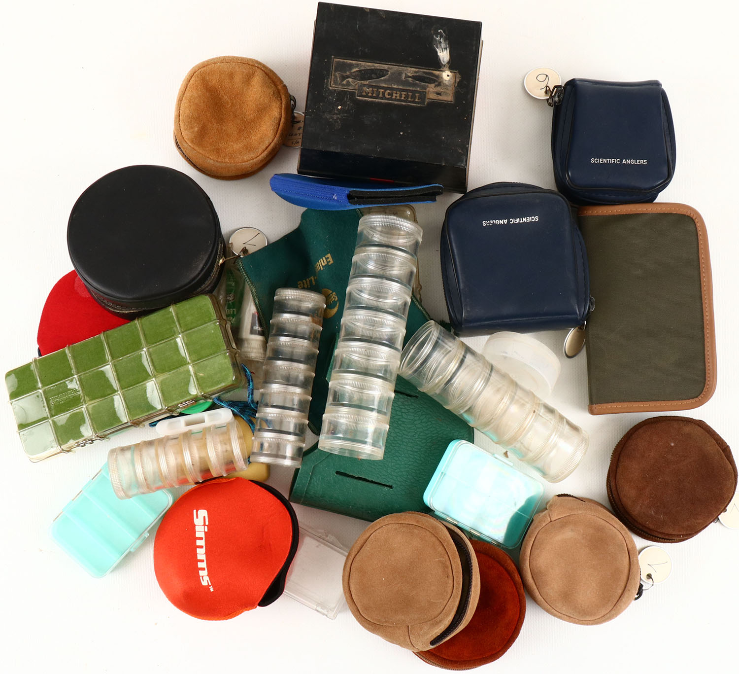 Large Lot of empty reel boxed, pouches & fly boxes. Grade: Very Good ++ - Value: 50 to 300