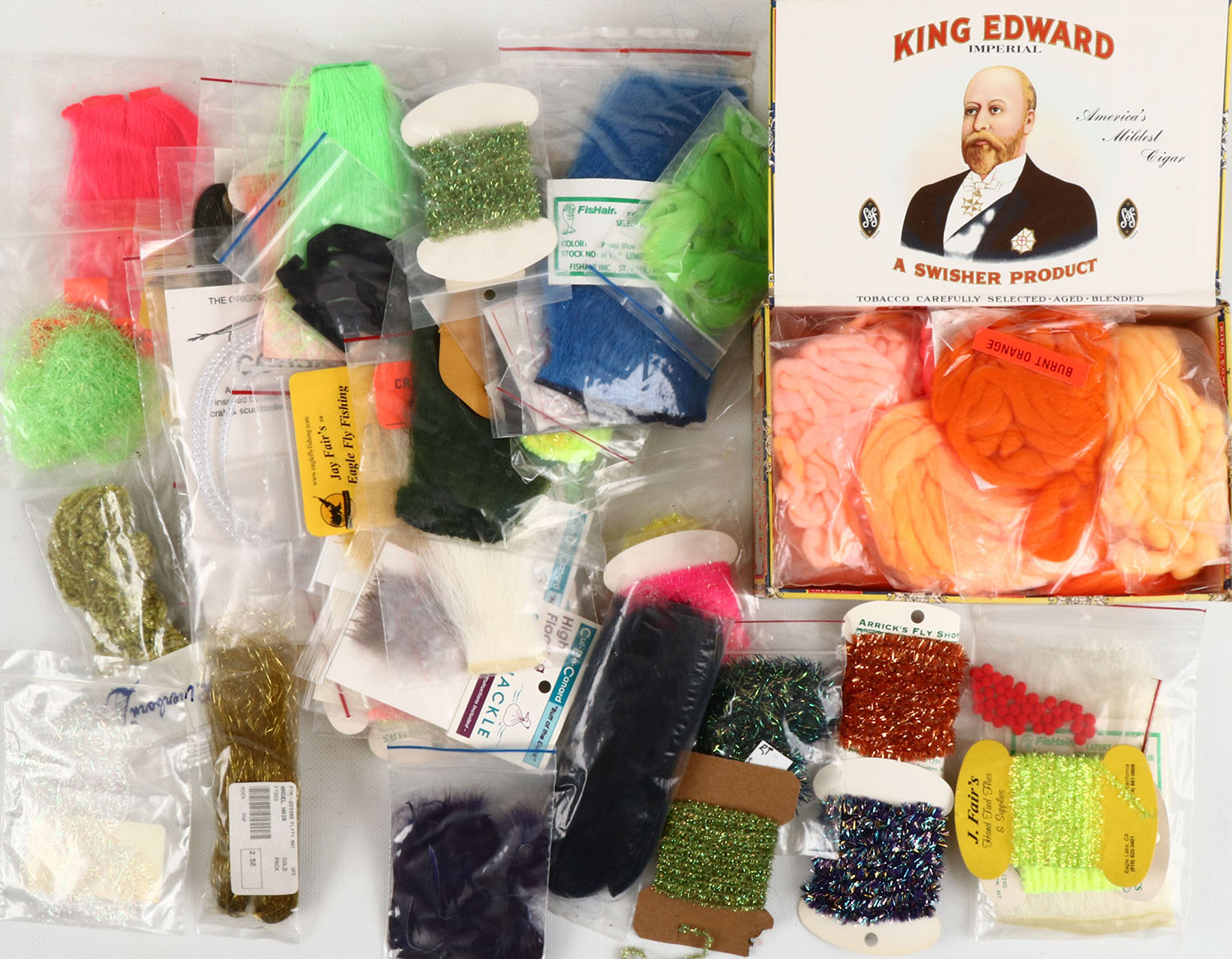 Large Lot of Yarn & colored line for tying flies, many different styles & types, see photos for details. Grade: Excellent - Value: 20 to 300
