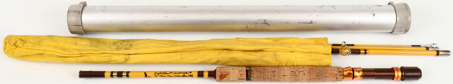 Eagle Claw Trailmaster Fly/Spinning rod, 7 1/2', 4pc., 1 tip, has cloth bag, handle flips over to convert from fly to spinning rod. Grade: Excellent - Value: 10 to 60