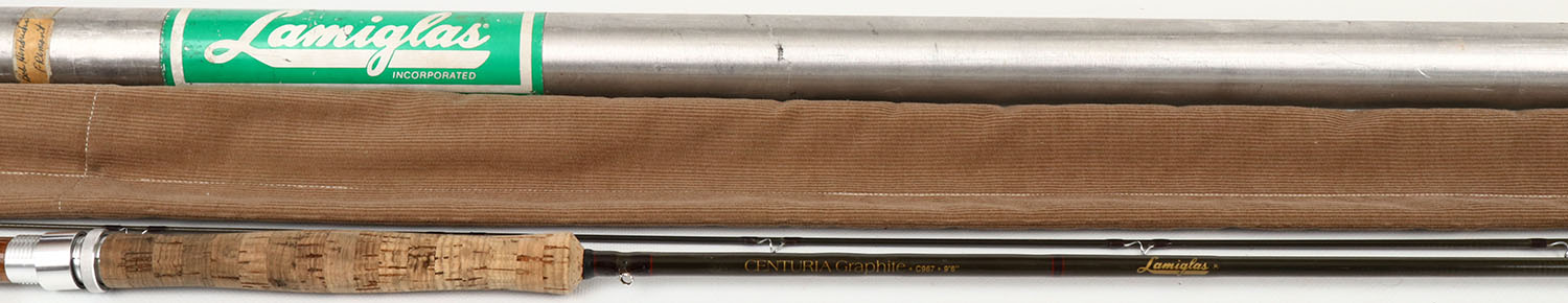 Lamiglas Centuria Graphite Fly Rod, 9'6'', 7wt., 2pc, 1 tip, No. C967, cork handle is lightly used, has original cloth bag & metal tube. Grade: Excellent - Value: 30 to 200