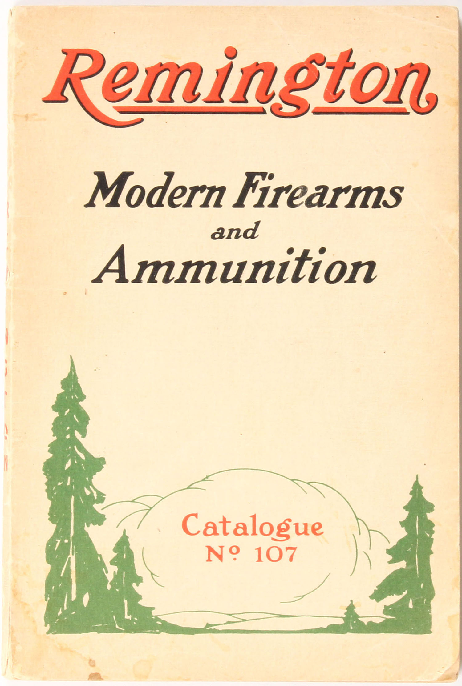 Remington Modern Firearms and Ammunition Catalogue No. 107, 192 pages, 1923. Pages clean, b/w images, cover has tears and wear, binding intact. Grade: Very Good ++ - Value: 2 to 200