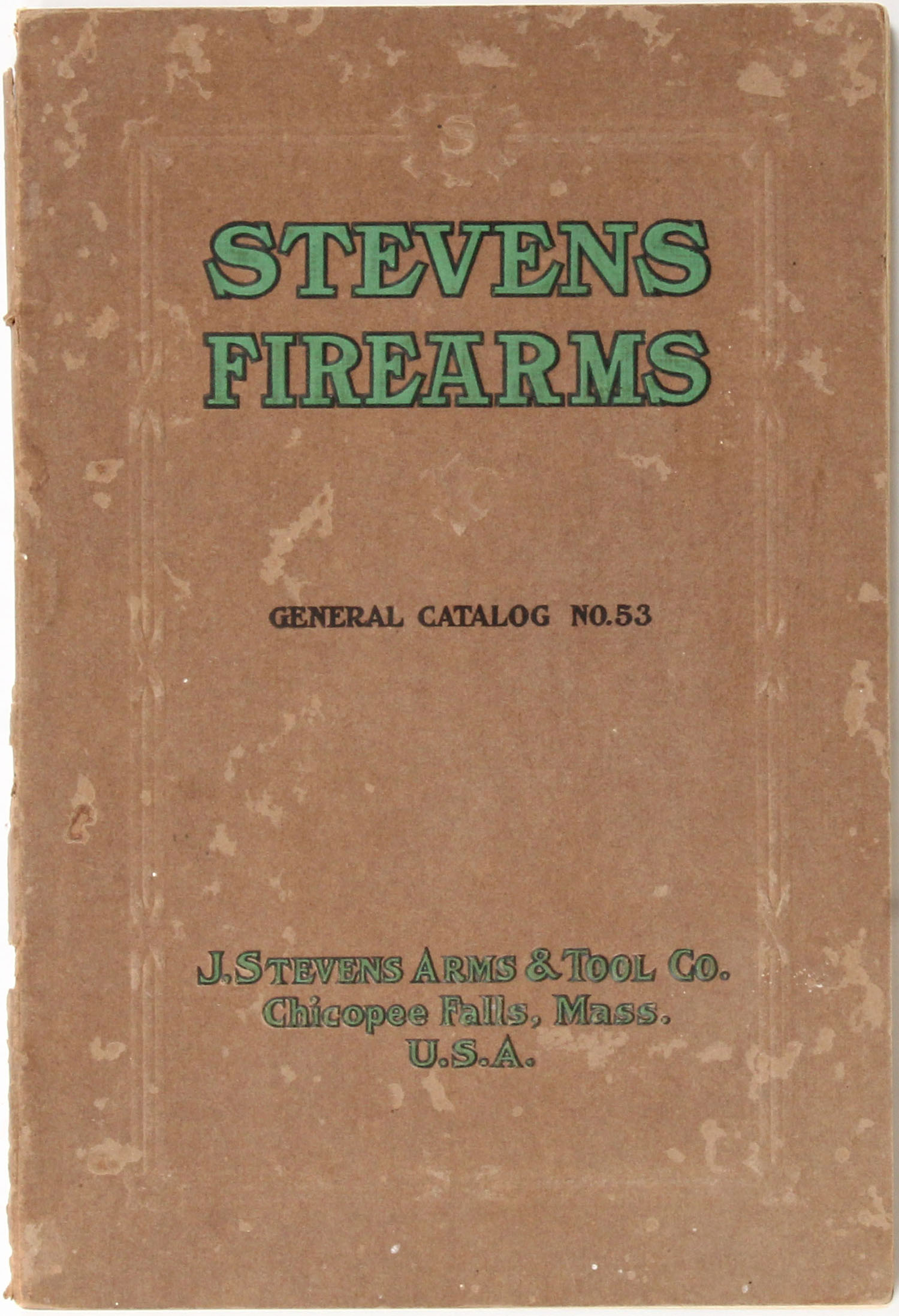 Stevens Firearms General Catalog No. 53, 1911, 78 pages, 6'' x 9''. Cover has some age spots and wear, binding intact but has tearing and wear, b/w images, pages clean. Grade: Very Good ++ - Value: 2 to 200