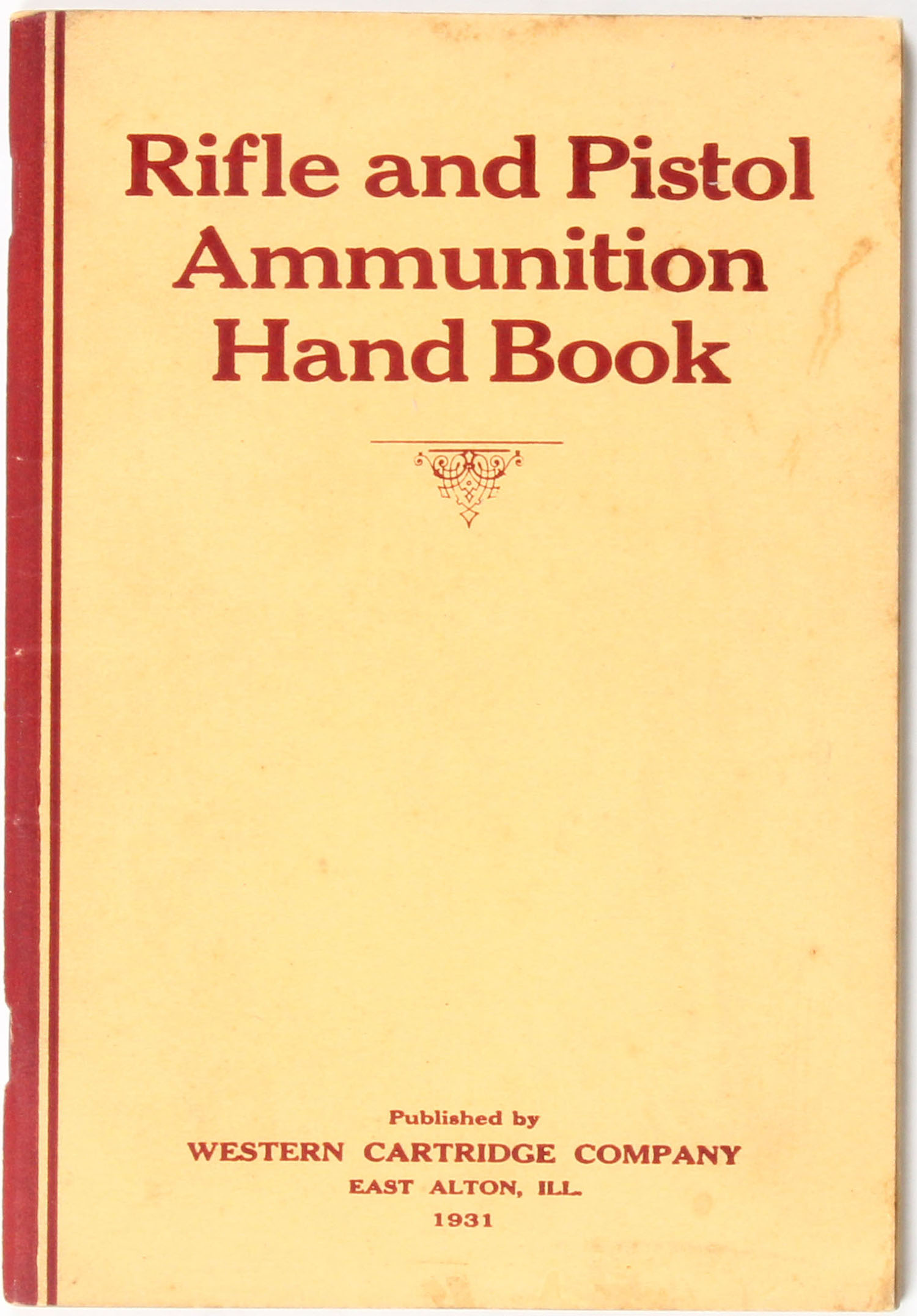 Rifle and Pistol Ammunition Hand Book by Western Cartridge Company 1931, 5 1/2'' x 8''. 64 pages, pages clean, staplebound, papercover very good. Grade: Very Good + - Value: 2 to 100