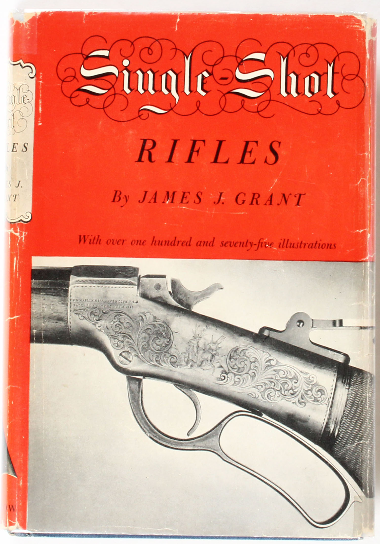 Single Shot Rifles by James J. Grant with over one hundred and seventy-five illustrations 1947, 6 1/2'' x 9 1/2''. 385 pages, pages clean, binding tight, hardcover and dustjacket very good, B/W images. Grade: Very Good ++ - Value: 2 to 200