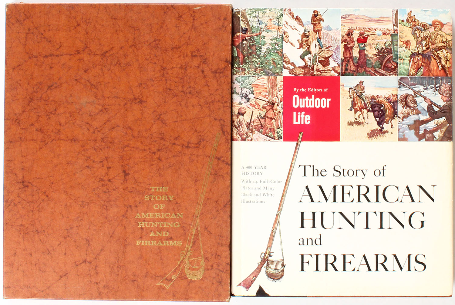 The Story of American Hunting and Firearms by Charles F. Waterman 1959, 10'' x 13 1/2''.172 pages, pages clean, binding tight, hardcover and dustjacket very good, dustjacket has some tearing, comes in hardcover book sleeve, colored images. Grade: Very Good ++ - Value: 2 to 100