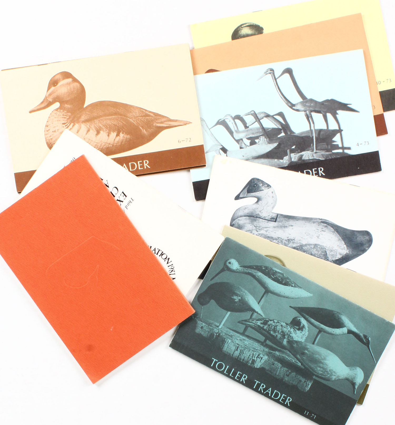 Lot of 10 Decoy Books (8) Toller Trader booklets (1) American Bird Decoys by William J. Mackey JR. 1971-1973. (1) Third Annual Exhibition of Classic Antique Waterfowl Decoys April 23, 24, 25, 1981. all 5 1/2'' x 8 1/2''. All staplebound, pages clean. Grade: Very Good ++ - Value: 2 to 100