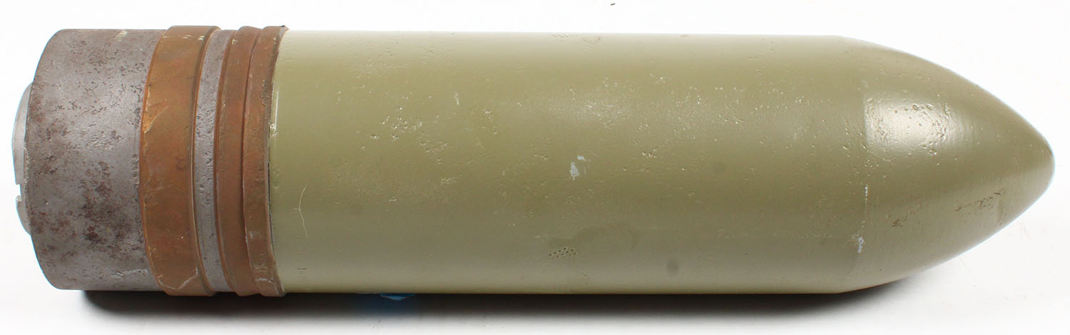 | Military projectile, side marked, ''NOR-4-8 1976 105MM M416'...