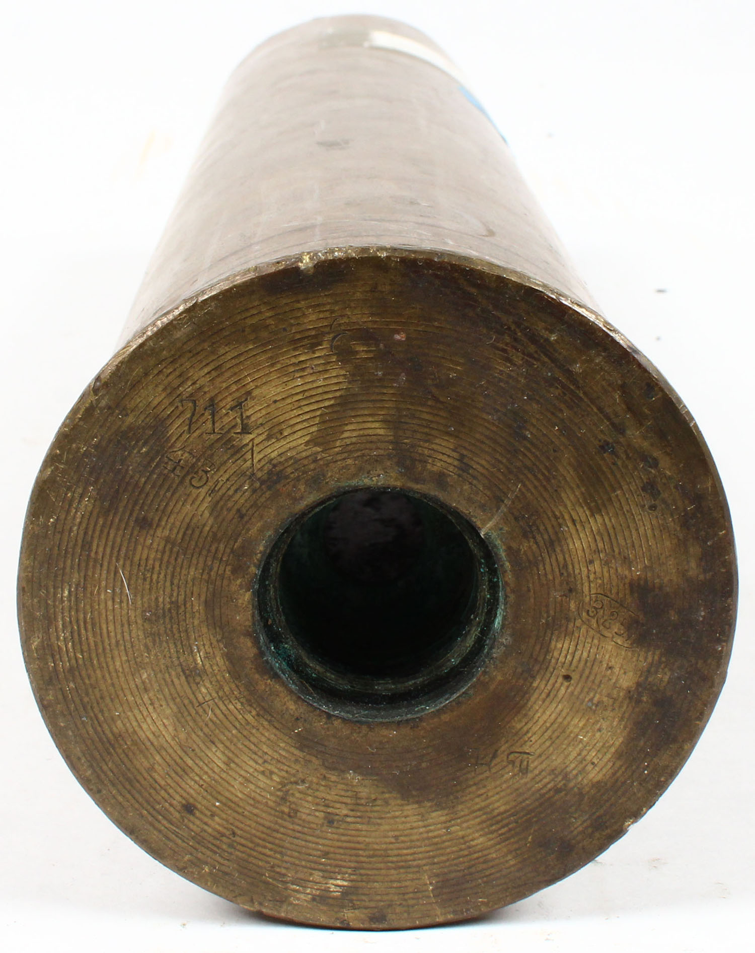 German Used WW2 Russian 76.2mm Fieldgun shell case, 76.2 x 385mmR, Cased Dated 1943, H/S ''711'', ''43'', ''3275'' in oval, OAL- 15''. Grade: Very Good + - Value: 10 to 100