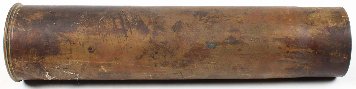 US, 75mm, H/S, Flaming Bomb, ''A. M. LOT8-8-5-9-8-H'', ''75MM F.G.'', ''B.H.-8859- 8-18'', OAL- 13 3/4''. Grade: Very Good + - Value: 10 to 100