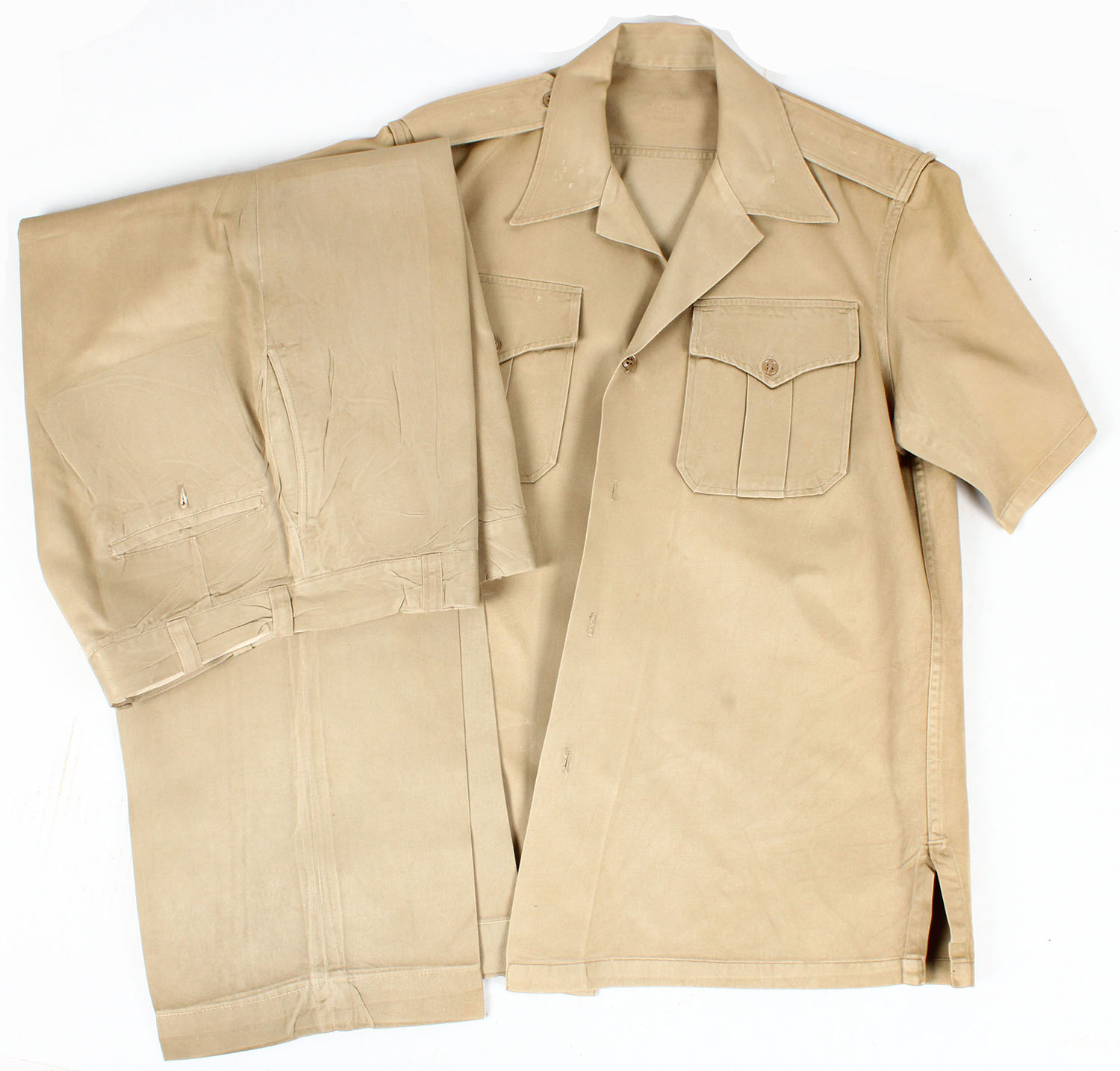US, Vietnam Era, Army Officer Canvas Khaki short sleeve uniform shirt & Canvas Khaki Pants, Shirt size Medium. Grade: Excellent - Value: 2 to 10