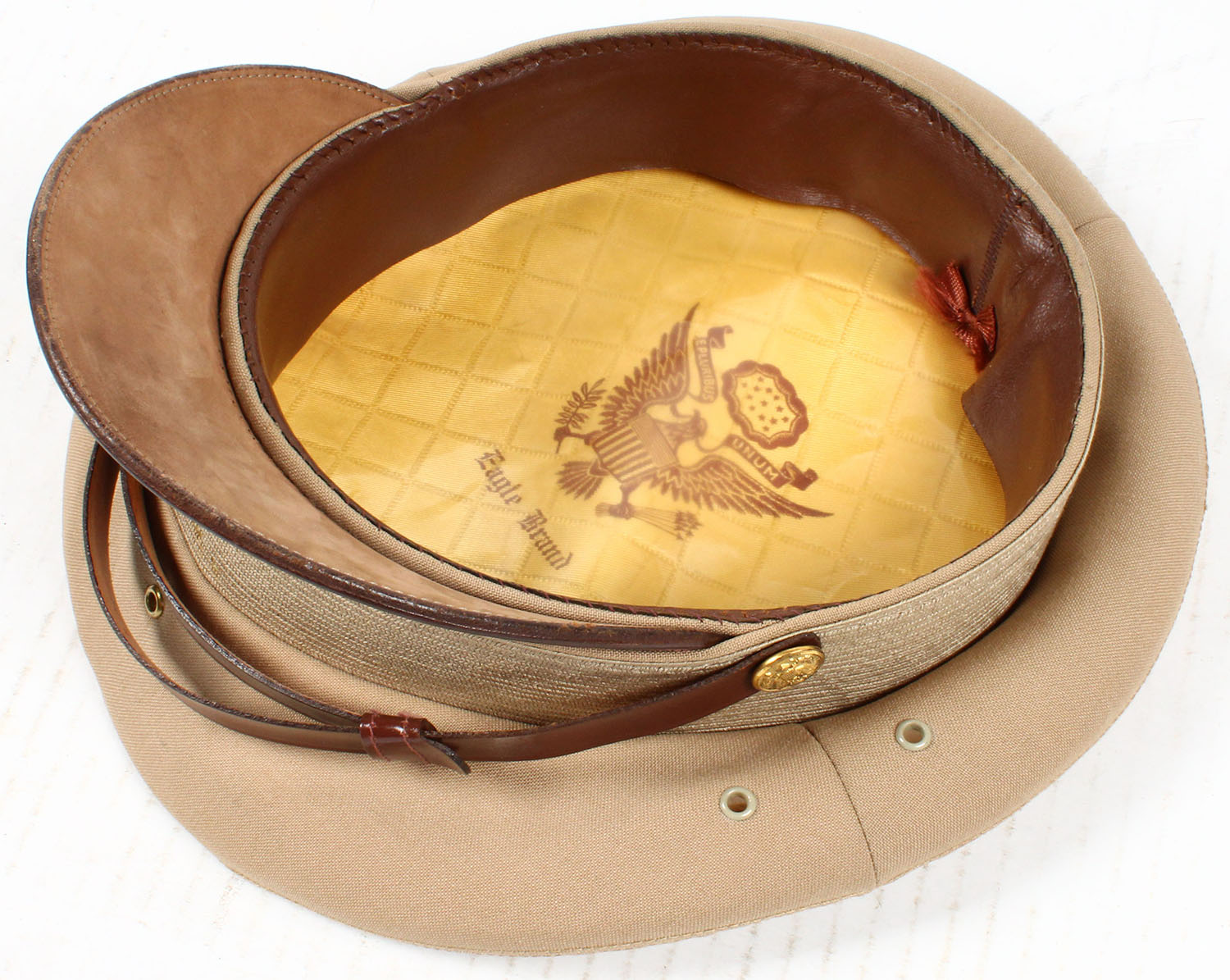 US, WW2 Army Officer Cap, top has light rub wear, inside of cap has The Great Seal of the United States & marked ''EAGLE BRAND''. Grade: Excellent + - Value: 10 to 60