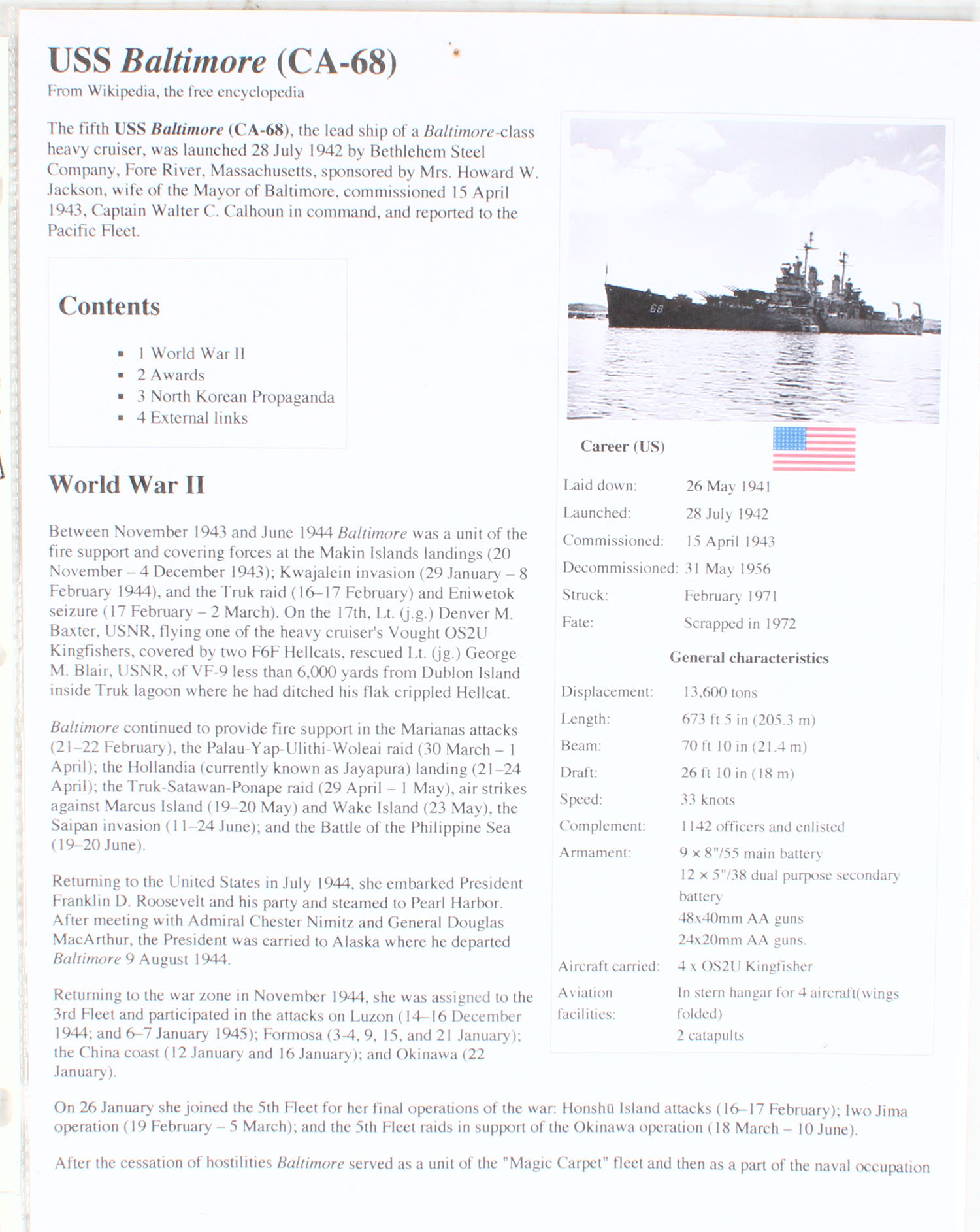 | US Baltimore, Life preserver ring, This life ring came off The U...